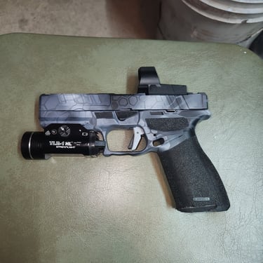 Look through our gallery, see something you drop us a line. See something you like but not the print no problem we have over 50 Hydrographic film prints, 20+ colors of Cerakote and can engrave almost anything! We are always adding to our Film and Cerakote color options. Custom work is always available.